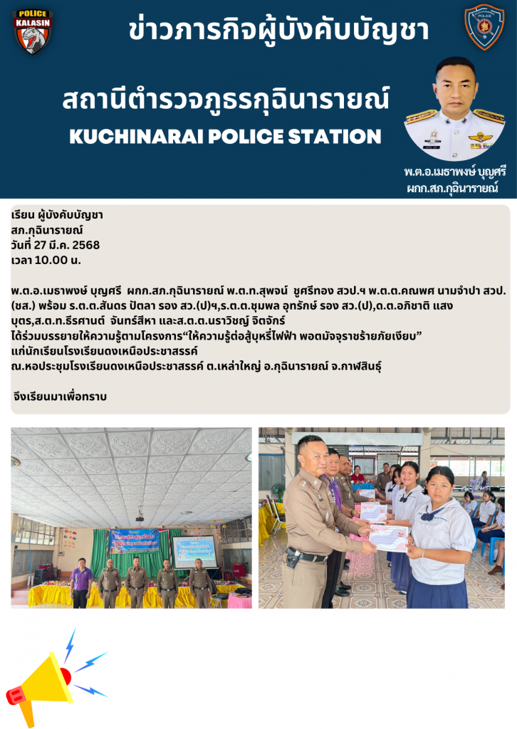 บรรยายให้ความรู้ตามโครงการ“ให้ความรู้ต่อสู้บุหรี่ไฟฟ้า พอตมัจจุราชร้ายภัยเงียบ” 27 มี.ค. 68